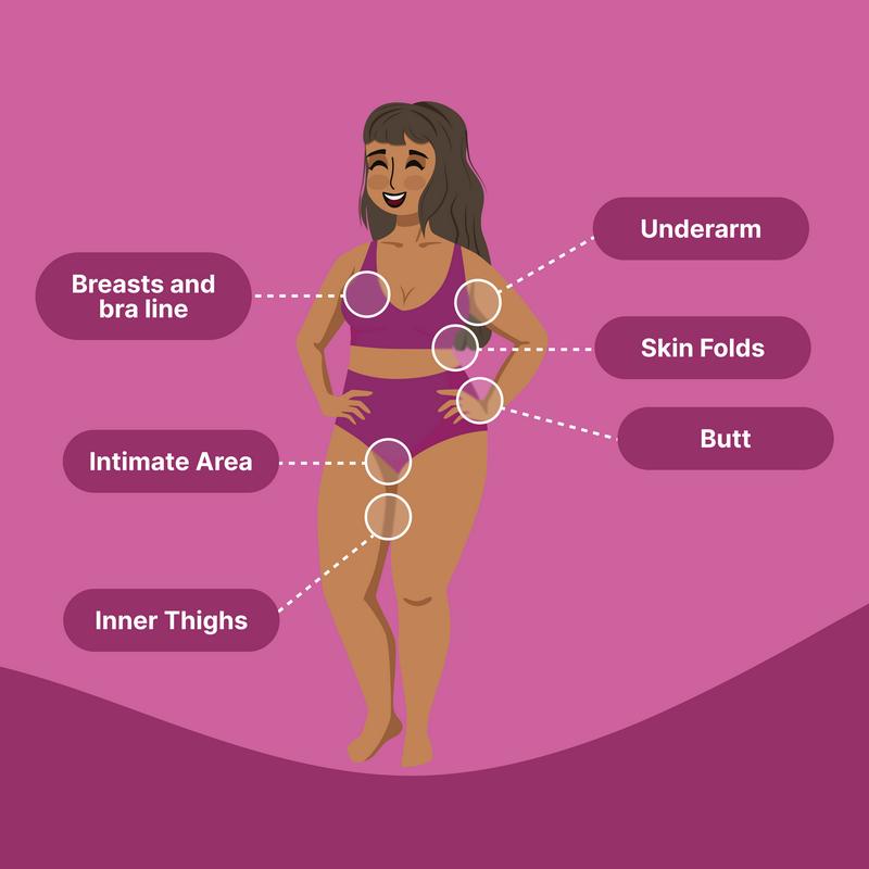Serava™ products are safe to use all over. We suggest any spots on your body that are high friction, high heat, and prone to extra sweating but the ingredients are safe for intimate areas and more.